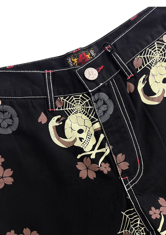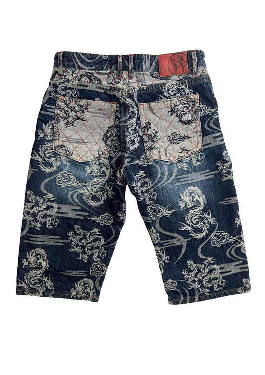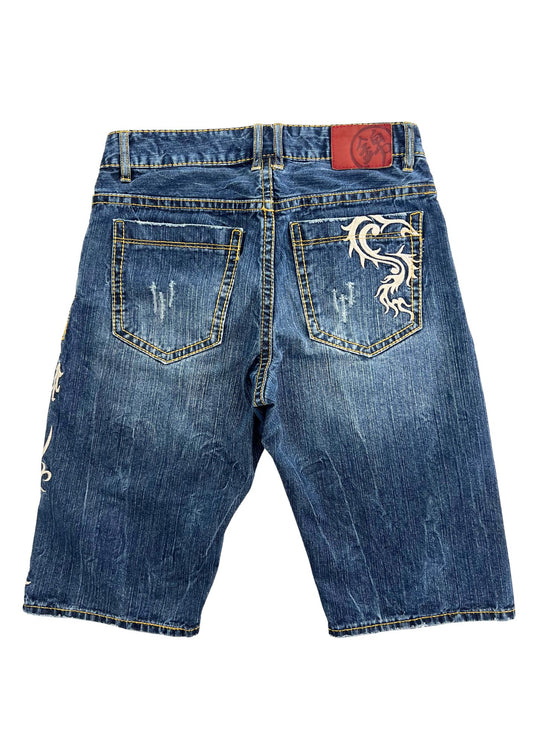 2010s Nishiki Japanese Dragon Embroidered Denim Shorts