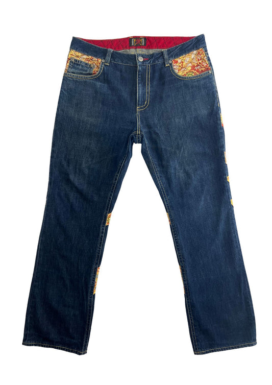 2010s Nishiki Japanese Kimono Thunder Patch Denim Jeans