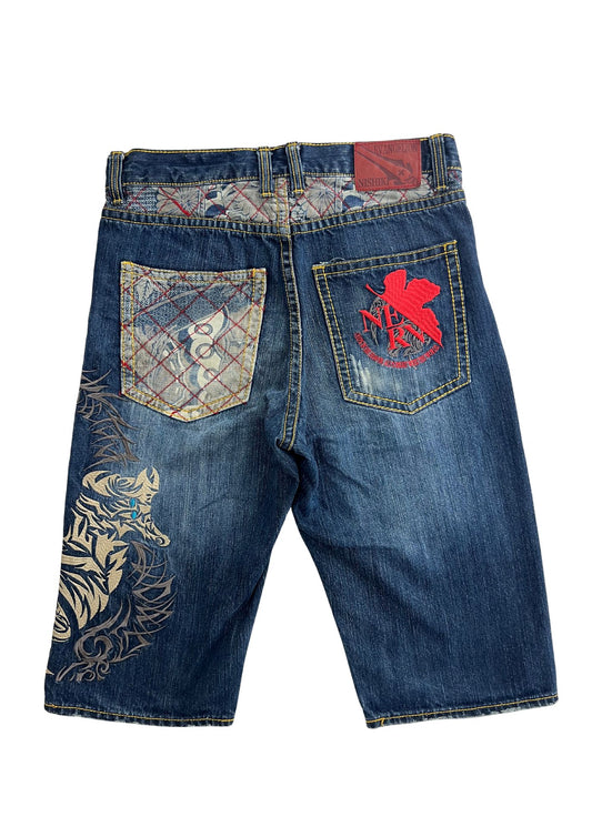 2010s Neon Genesis Evangelion x Nishiki Embroidered EVA 01 EVA 02 Denim Shorts
