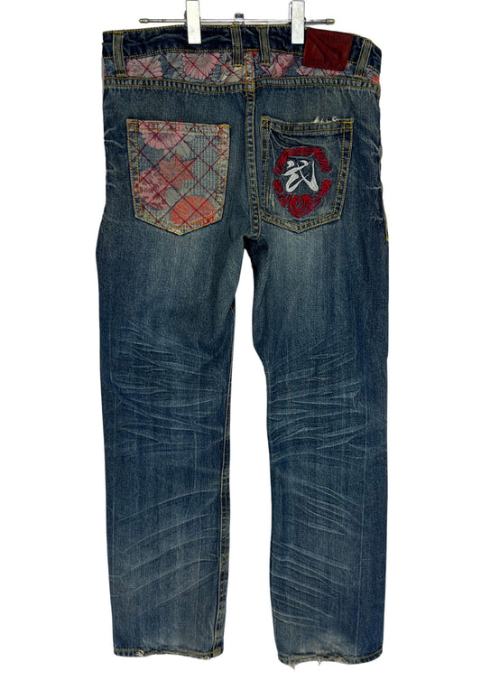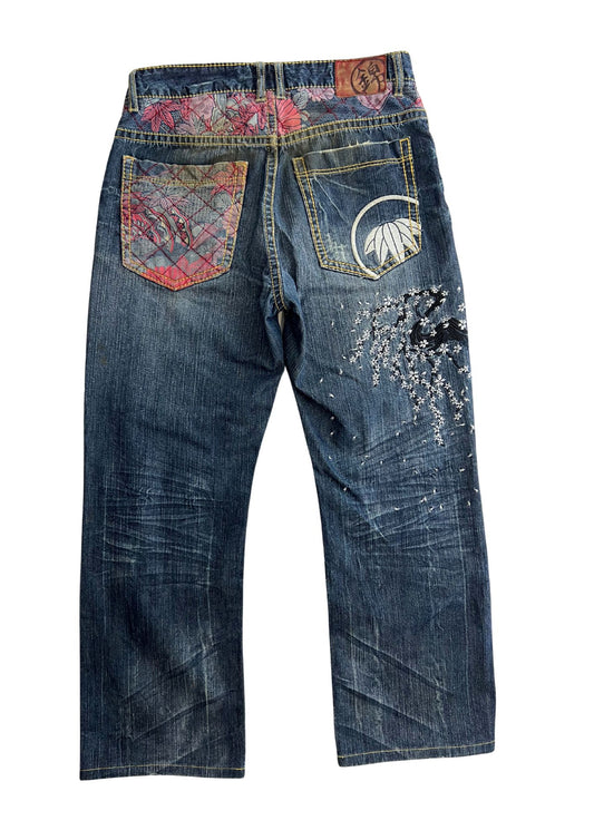 Vintage Nishiki Japanese Cherry Blossom Embroidered Denim Jeans