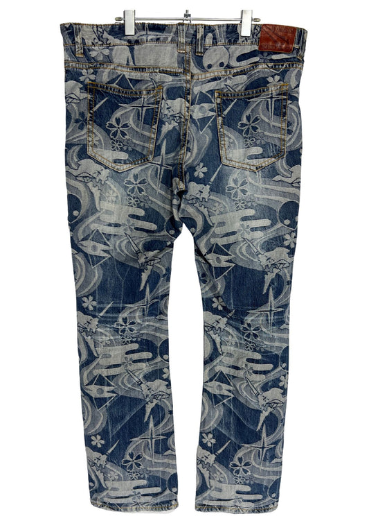 2010s Neon Genesis Evangelion x Nishiki Oriental Brand Type 02 Japanese Pattern Embroidered Jeans