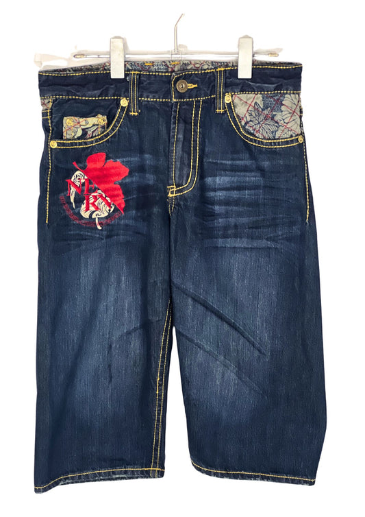 2010s Neon Genesis Evangelion x Nishiki Embroidered Lilith Half Denim Jeans