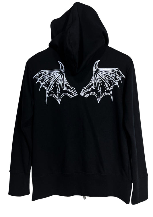 2000s GLAD NEWS 'Batwings Skull' Zip Up Hoodie (Ladies M)