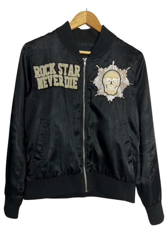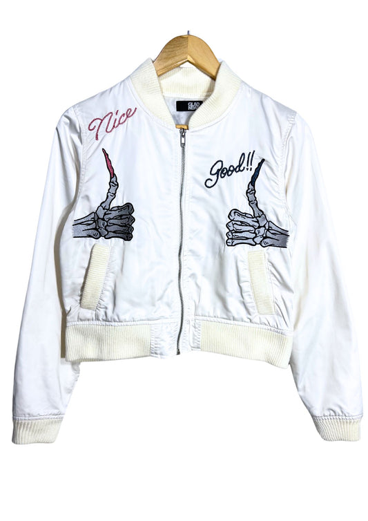 2000s Vintage GLAD NEWS 'Skull ' Mash Cropped Zip Up Jacket (Ladies M)