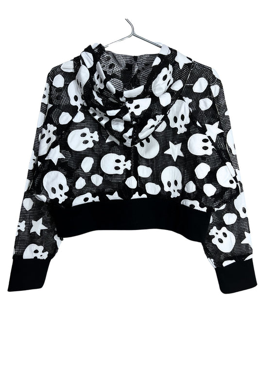 2000s Vintage GLAD NEWS 'Skulls and Stars' Mash Cropped Zip Up Hoodie (Ladies M)
