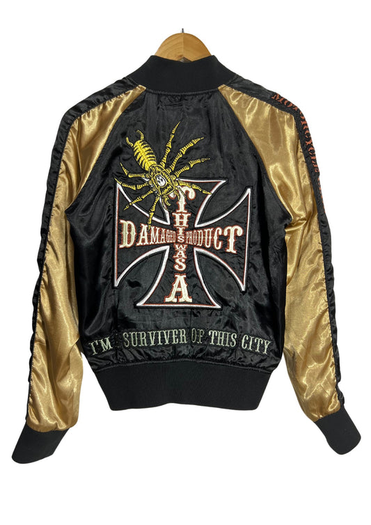 2000s Vintage GLAD NEWS 'Tiger Skulls and Rose' Reversible Embroidered Jacket (Ladies S-M)