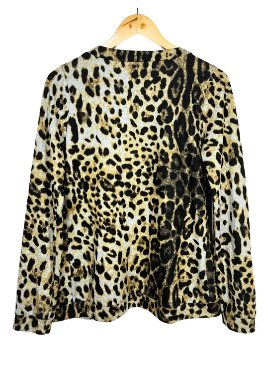 2000s Vintage GLAD NEWS 'Leopard Print and Skull Studs' Cardigan (Ladies M)