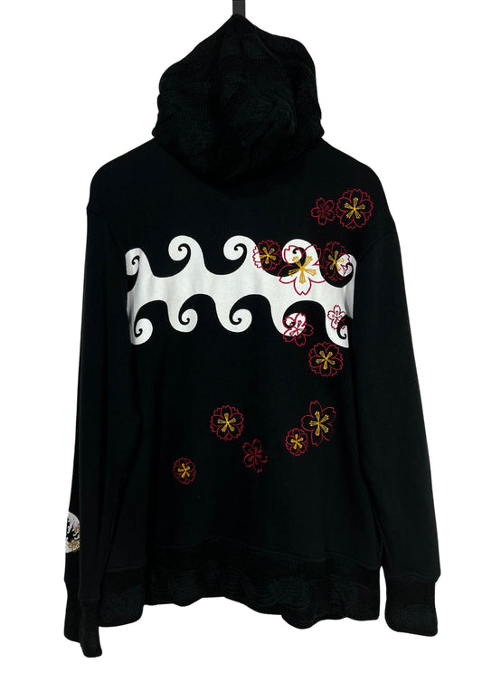 NAMITATSU 'Sakura Wave' Embroidered Knit Zip Up Hoodie