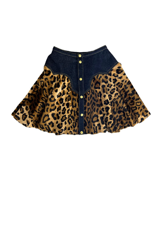 90s Vintage HYSTERIC GLAMOUR Leopard Print Denim Jacket Skirt Setup