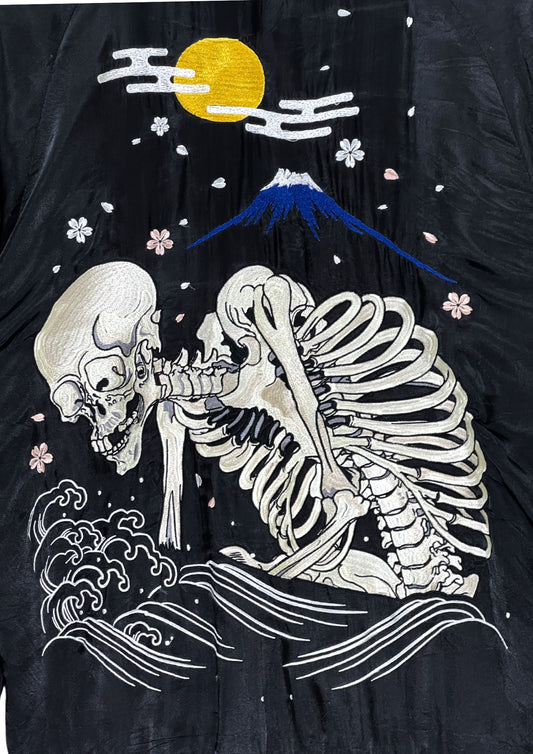 2000s CROPPED HEADS 'Utagawa Kuniyoshi Skull Art' Embroidered Reversible Souvenir Jacket (L)