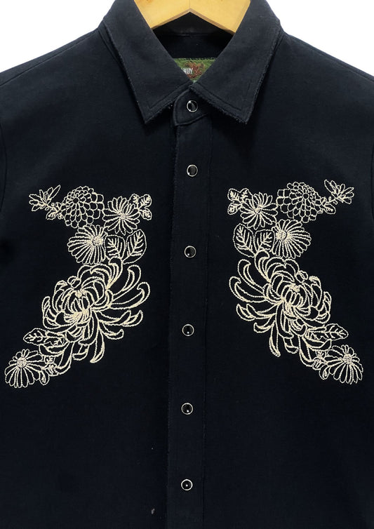 2000s CROPPED HEADS 'Bamboo Grass' Japanese Art Embroidered L/S Shirt (M-S)