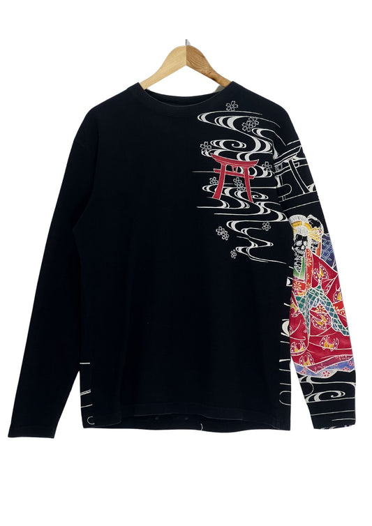 2000s CROPPED HEADS 'Skull Geisha' Japanese Art L/S Shirt (L-M)