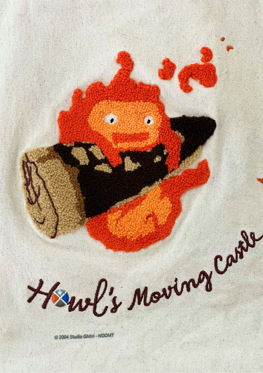 2023 Howl's Moving Castle x Studio Ghibli Official 'Calcifer' Embroidered Tote Bag