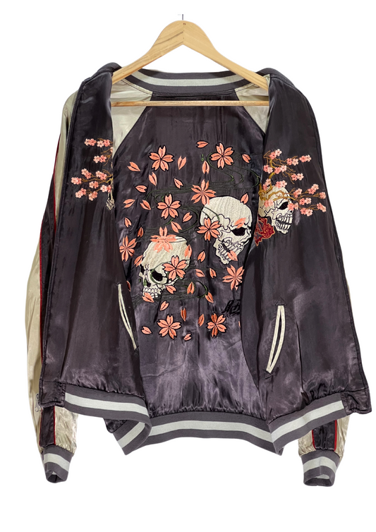 2000s Hishouhakurei 'Cherry Blossoms Skulls' Embroidered Reversible Jacket (L)