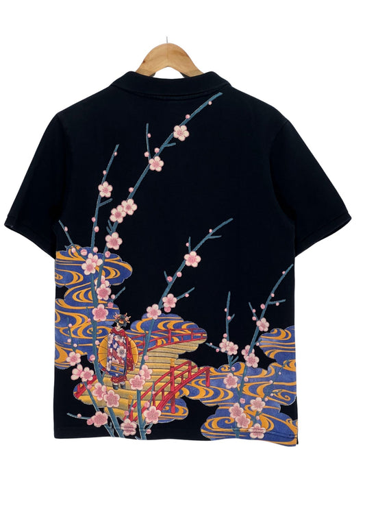 2000s CROPPED HEADS 'Sakura & Geisha' Japanese Art Polo T-Shirt (M)